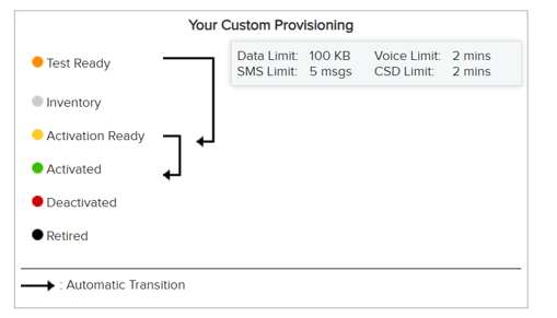The following states are possible in the Jasper Portal of your tech+ SIMs: